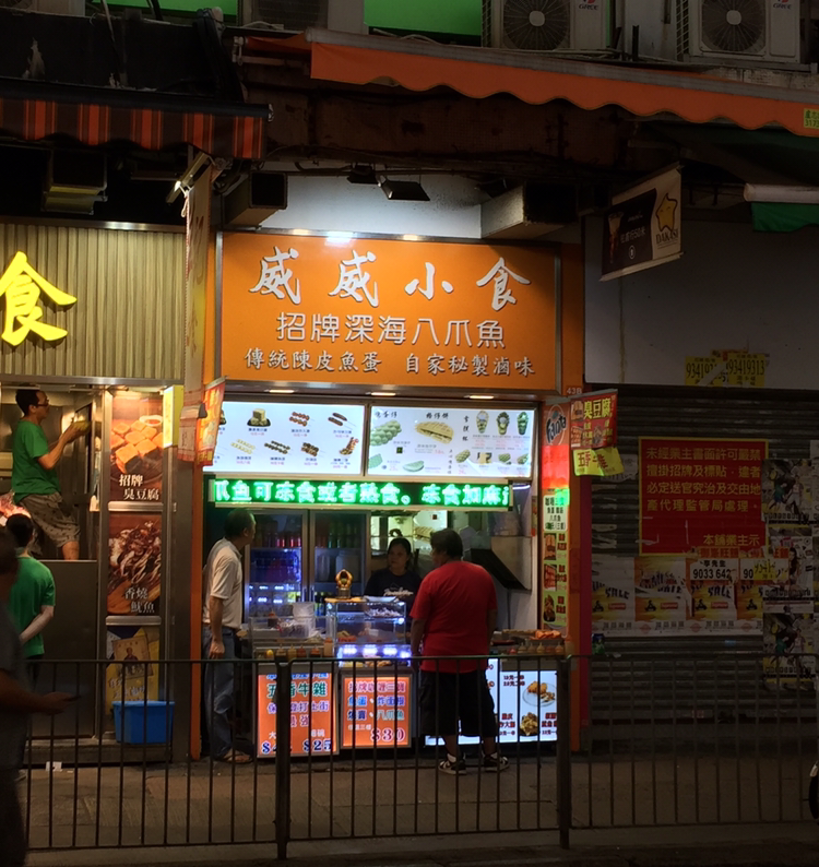 「這個跟後面街角那家真的不一樣。調配的漿液不同,而且她的燒法,恰恰令吸盤變得脆身,裡面就剛好熟透,還是軟嫰的。相比那種炸的,令裡面收乾水分的做法,必定是這種更好吃的。我做慣飲食,這些分別當然知道。」